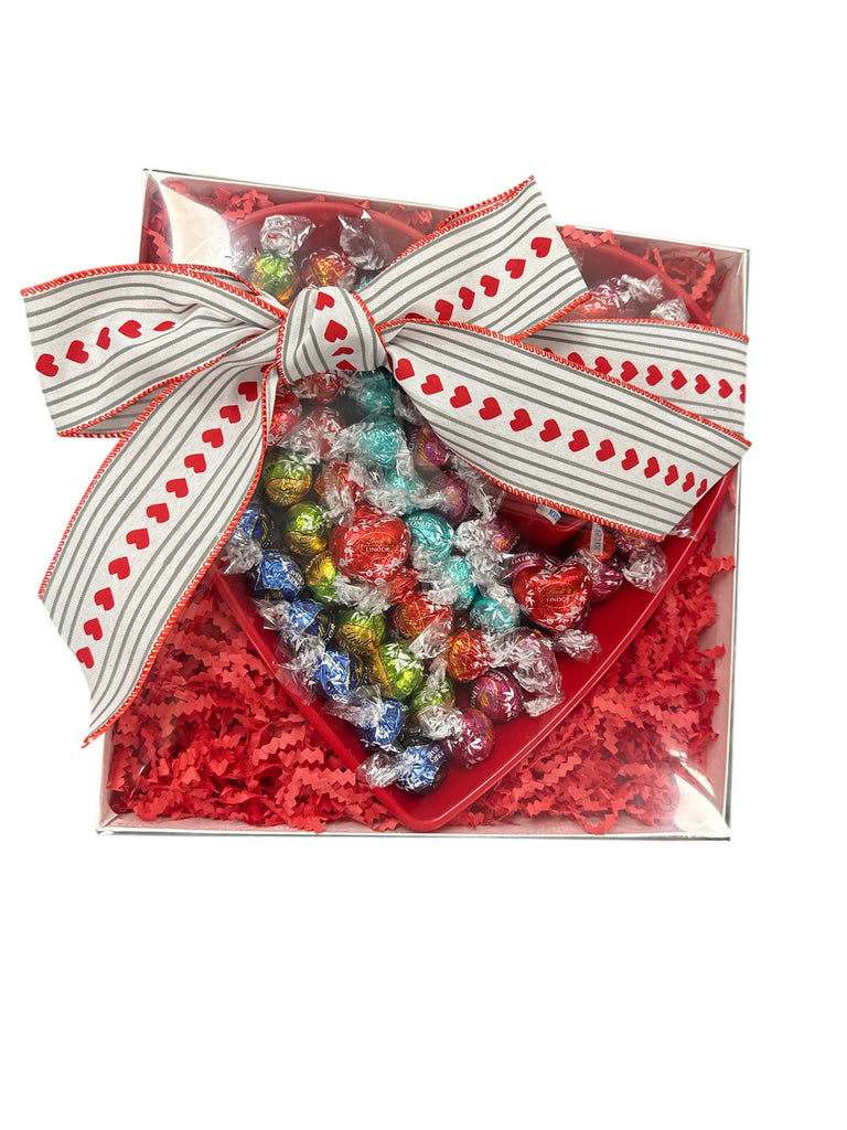 All red foiled classic Lindor milk chocolate truffles with Hershey Kisses.