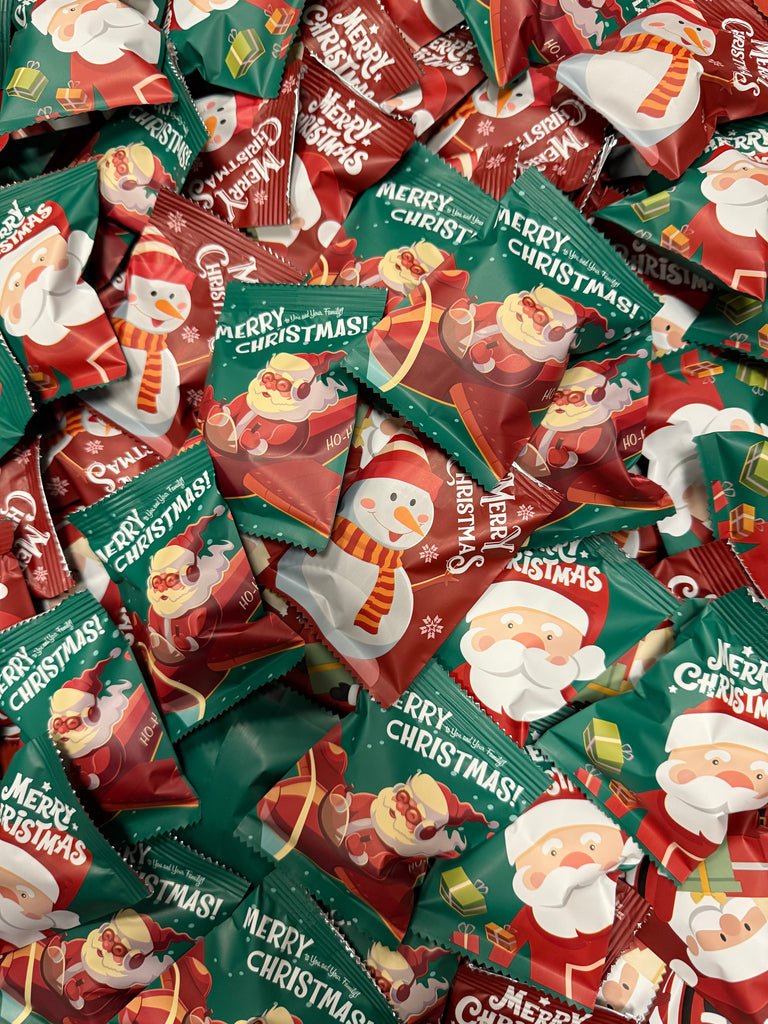 Each package contains between 6-9 pieces of Christmas themed gummies.